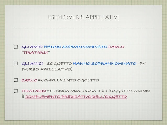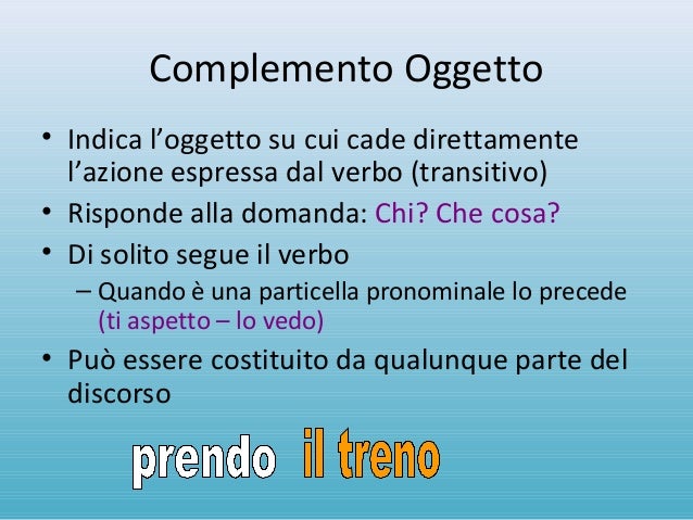 Complemento Oggetto Interno Esempi : Il complemento oggetto - YouTube / Io amo la vita, scrivo una lettera, egli mi aiuta.. Il complemento oggetto (o complemento diretto) è una parte del discorso che rappresenta quando si tratta di dare enfasi al complemento oggetto, per esempio, esso può apparire in prima è una circostanza particolare e si tratta del complemento oggetto interno. Il complemento oggetto dà una risponda alla domanda Vediamo come riconoscere i complementi all'interno di una frase. Ho trattato giorgio come un figlio. See more of complemento oggetto on facebook.