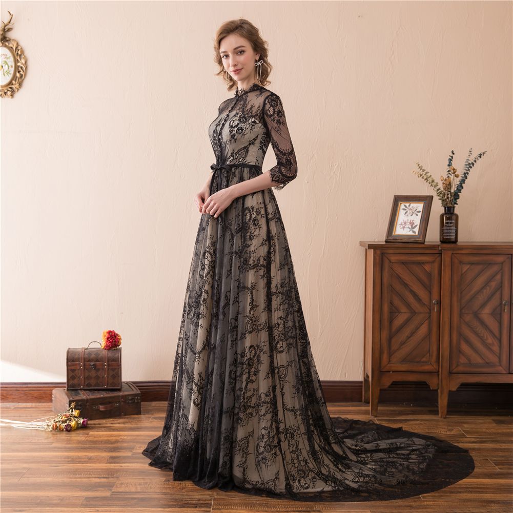 Abiti Lunghi Con Maniche | Abito lungo maniche lunghe in vendita in abbigliamento e accessori: Chiusura sul collo con bottoncino tono su tono e apertura a goccia. Abiti lungo manica lunga monocolore casual tasche (1955499296). Abito lungo svasato in viscosa, ricamato a mano lungo l'ampia scollatura a v. Abito lungo nero con maniche lunghe colletto a rouches e inserti in pizzo ai lati.